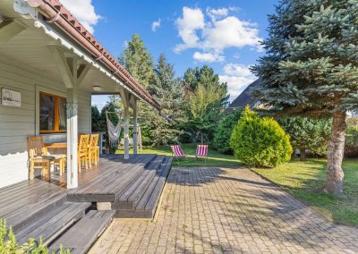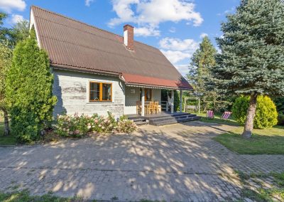 Dom z werandą. Przytulny, pełen kolorów dom, którego ozdobą są obrazy z sielskimi widokami starych dworów oraz wsi polskiej. W dziadkowym fotelu przy kominku z ziołową herbatką z pewnością odpoczniesz i pomarzysz o niebieskich migdałach…