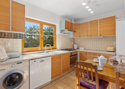 - kuchnia z lodówką, kuchenką, zmywarką i pralką,